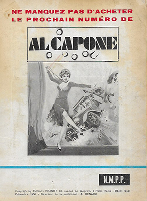 N°1 (11.1968) : couverture italienne pour AL CAPONE n°4 (Athos Cozzi) [la 4e de couverture annonce la couverture italienne du AL CAPONE n°5, qui ne sera pas utilisée]