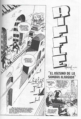 Western espagnol : L’ombre – 10 pl. (Série RIFFLE n°3 : El asesino de la sombra alargada – 7 pl.) – Rafael López Espí (signature effacée). Réédition de ROCKY n°3 (6.1962)