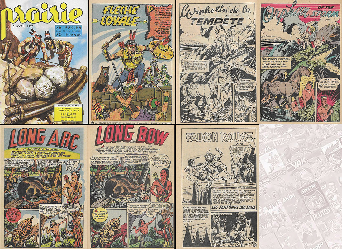 - 41, 43 : Les rapaces (ép. 1 : BQ du 19.6.1950 au 12.8.1950) : pour sauver son ami Packy et empêcher une guerre indienne, Flèche Loyale doit retrouver les vrais coupables de l’assassinat d’un indien Kiowa.