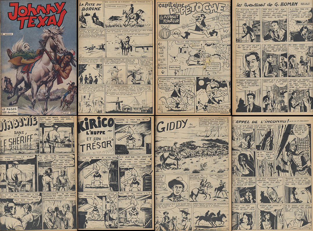 Tout comme LES HISTOIRES ILLUSTRÉES paru en 1954, JOHNNY TEXAS est en grande partie réalisé par le prolifique Yves Mondet, capable de travailler dans des genres très variés mais au trait toujours parfaitement reconnaissable.