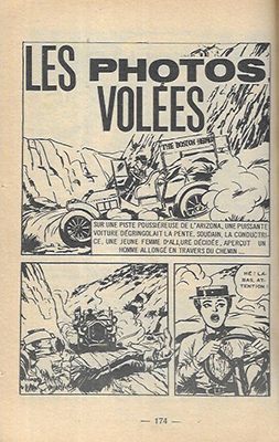 • Jim le solitaire : Les photos volées – 16 pl. (Solitario Jim : Las fotografias desaparecidas – 16 pl.) – Scénario de Miguel González Casquel et dessins de Prieto Muriana. Réédition de REQUINS HS (1er trim. 1966). Nouvelle traduction aux éditions Aventures et Voyages dans TOTEM 2e série n°49 (5.8.1982) : Doris