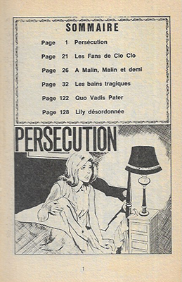 • Persécution – 20 pl. (Série SUSPENSE n°46 : Perseguida – 20 pl.) – Scénario de Juan Almirall et dessins de Juan Abellán (signé). Paru en Espagne dans RELATOS DE SUSPENSE n°15 (15.4.1964)
