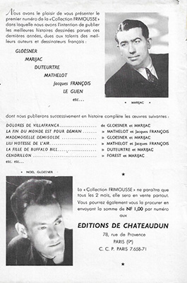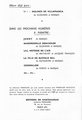 Publicité parue dans FRIMOUSSE n°59 (1.1.1961)