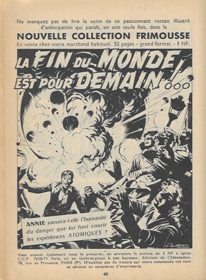 La fin du Monde est pour demain – 29 pl. (scénario Marijac/dessins Christian Mathelot). Réédition de MIREILLE n°89 (13.10.1955) à 106 (9.2.1956).
