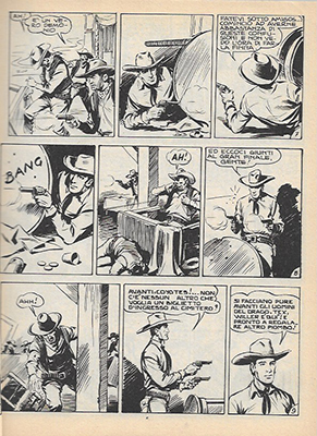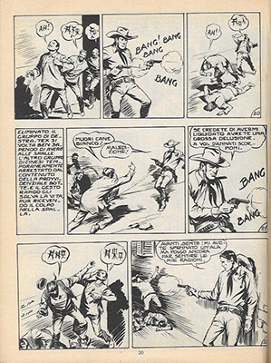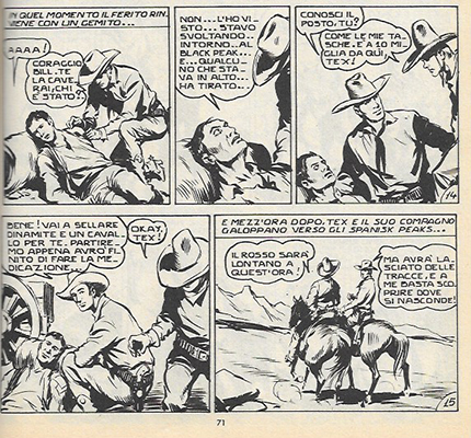 Note : rappelons que les premières aventures de Tex ont été publiées en Italie sous forme de « strisce », petits fascicules hebdomadaires formés de 32 bandes horizontales.