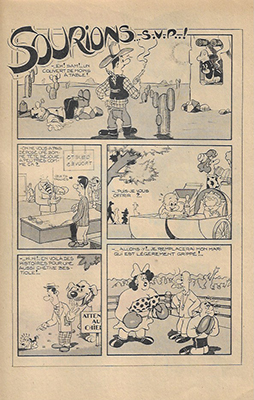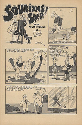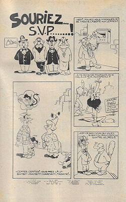 Sourions S.V.P. ! (Sorridete prego) – 2 planches de vignettes humoristiques (Luciano Bottaro), parues aux éditions De Leo dans PICCOLA STRENNA (sans date : 1952) et SOGNO D’ESTATE (15.7.1952). La planche 1 a été rééditée dans RANCHO SPÉCIAL n°13.