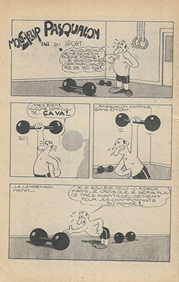 Monsieur Pasqualon fait du sport – 2 pl. (Sor Pasquale) – Luciano Bottaro. Réédité dans RANCHO SPÉCIAL n°13