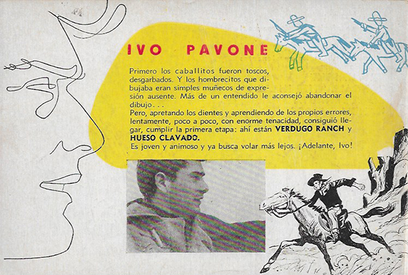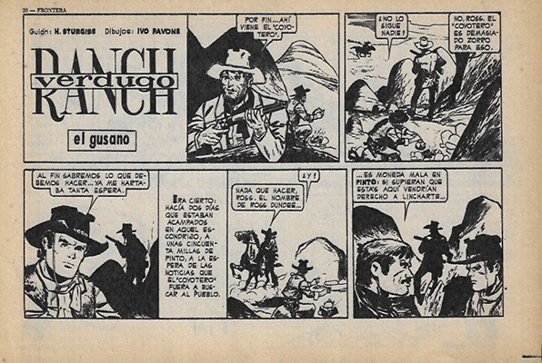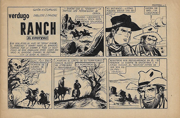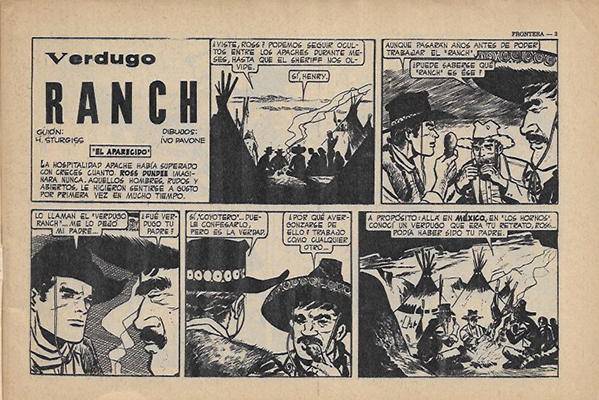 N°4 à 11 : western d’origine argentine paru dans la revue FRONTERA du n°1 (4.1957) au n°12 (3.1958), sur des scénarios d’Héctor Oesterheld (les 10 premiers sont signés du pseudonyme de H. Sturgiss) et des dessins d’Ivo Pavone.