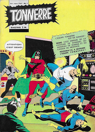 Rappelons que TONNERRE fut la première tentative d’introduction de super-héros US dans une publication française, deux ans exactement avant le FANTASK des éditions LUG. Tous deux connurent les foudres de la censure.