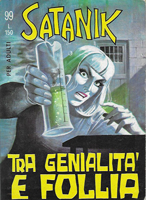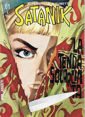 Première héroïne du crime dans l’univers des « Fumetti Neri », Satanik est une création du scénariste Bunker (Luciano Secchi) et du dessinateur Magnus (Roberto Raviola). Elle a été publiée en Italie aux éditions Corno sur 231 numéros, de décembre 1964 à novembre 1974. De nombreux autres auteurs ont participé à cette collection et on trouvera le détail des crédits sur le site de Gianni Bono : guidafumettoitaliano.com ou bien dans sa version papier (éditions Epierre, page 1679).