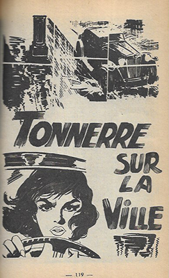• Tonnerre sur la ville – 20 pl. (Série SUSPENSE n°5 : Truenos en la noche – 20 pl.) – Scénario de Salvador Dulcet et dessins de Rafael López Espí. Réédition de RUSH n°1 (1.1963) [la signature du dessinateur, présente dans RUSH, a été effacée]