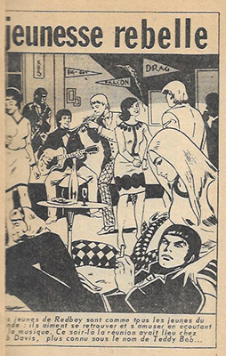 « Teddy Bob est un jeune blouson noir, rebelle mais honnête, fils d’un inspecteur de police avec qui il est souvent en conflit mais qu’il soutient dans son combat contre les malfrats. Poursuites en motos, coups de poings, chansons yéyés, bikinis et mini-jupes » (Bernard Joubert, Dictionnaire des livres et journaux interdits, page 859).