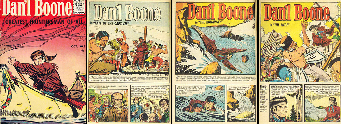 DAN’L BOONE de Magazine Enterprises (8 numéros publiés de septembre 1955 à septembre 1957) FRONTIER SCOUT DAN’L BOONE de Charlton (n°10 à 13 de janvier à août 1956).