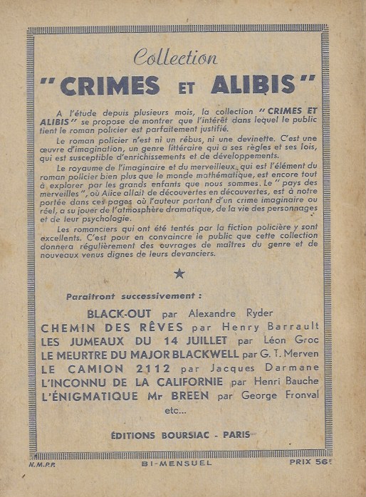 Page 3 de couverture : collection de romans policiers – éditions Diderot