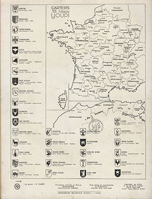 La page 4 de couverture reproduit une carte de France et d’Afrique du Nord des 33 tribus Youpi, signée Francis M. Léman (Francis Péguet)
